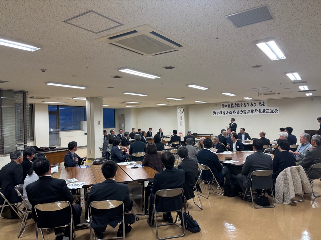 総会に引き続き、駒ヶ根青年海外協力隊訓練所の木村卓三郎前所長と横田隆浩新所長の歓送迎会を行いました。木村前所長には約1年半お世話になり、この間、新たな事業である訓練生と地域住民の交流会や高校生体験入隊の実施にもご理解とご協力をいただきました。