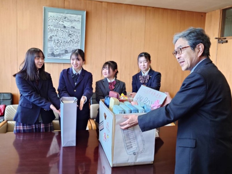赤穂高校の生徒の皆さんが学用品や書き損じはがきを回収し、当会に寄付してくださいました。