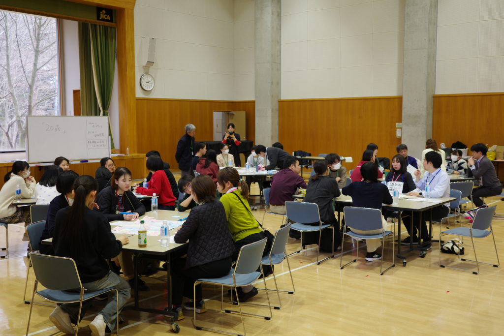 多様な経験や経歴をもつ訓練生との交流を通じて、自身の将来について考えるきっかけにしてほしいと今回初めて企画。長年行ってきた中学生向けの体験入隊とは異なり訓練生との対話に重点を置いた内容で、県内各地から参加した10名の高校生は、協力隊を志したきっかけや国際協力への想いなどをじっくり聞いたりワークショップを行ったりして、キャリアについて考えを深めました。